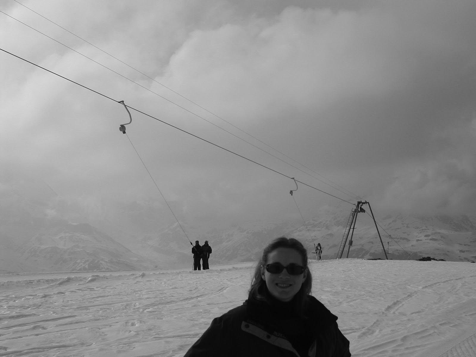 The lift behind me in the picture below is a t-bar lift. Instead of sitting in a chair that carries you up and over a slope, two people sit on either side of an upside-down T and it drags you up with your skis on the snow the whole time. This thing is my nemesis. I couldn't do it in New Mexico so I should have known better. It carried us up and down small hills in the snow, but going down one of these small hills my skis started going faster than my body on the t-bar, and for the life of me I couldn't slow them down. Stephen was shouting my name because I was becoming more and more parallel with the ground and he couldn't grab me, and eventually I was so off balance that I had to let go. Stephen went down with the ship and let go, too. The problem became that I was a new skier and the slope I had just dropped myself onto was a double black. How we made it down that thing I have no idea!